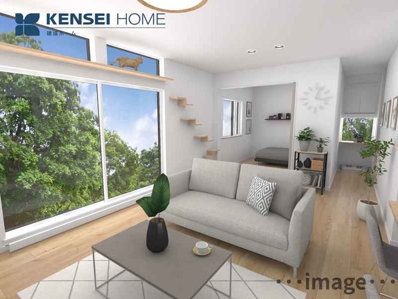 愛猫がストレスなく快適に過ごせるよう、習性に配慮して空間や動線に工夫を施した間取設計。