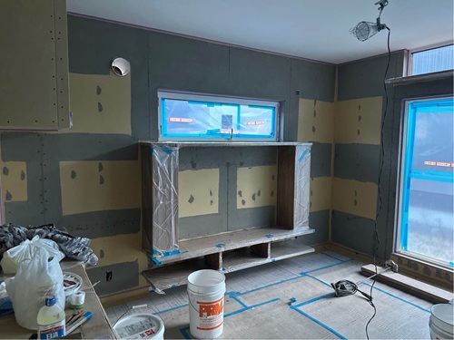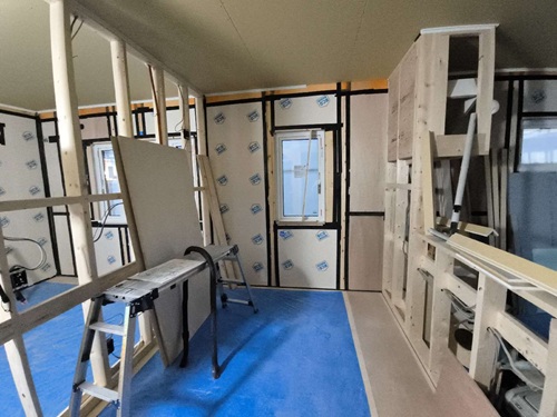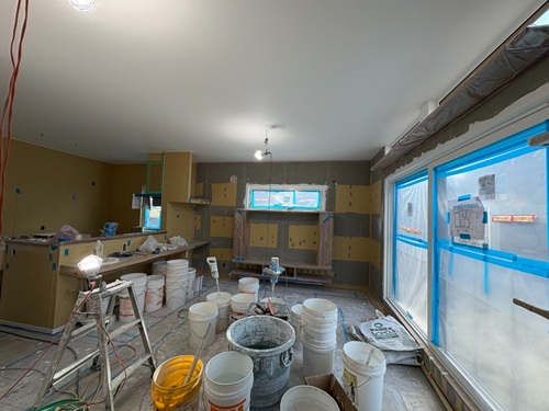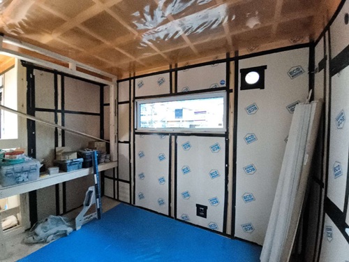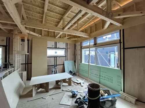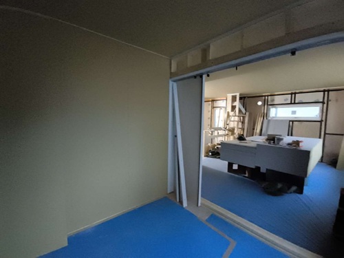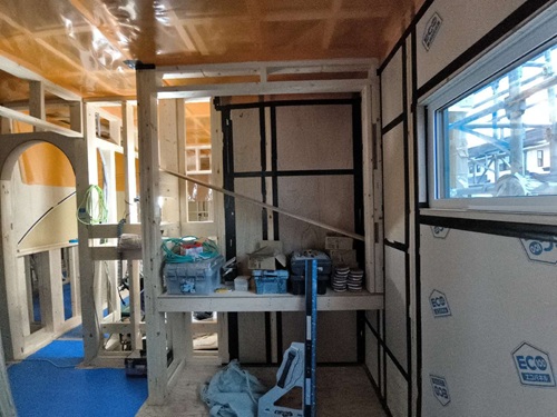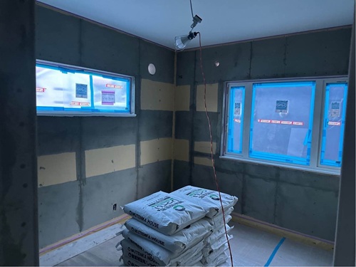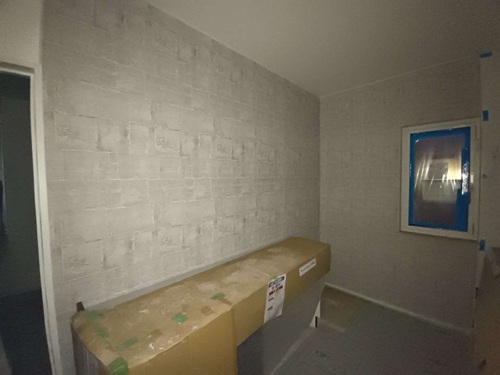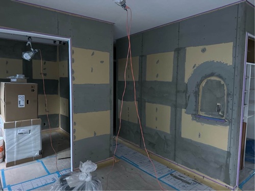 漆喰を塗る前の工程、下地材となるベースコートを塗りました。