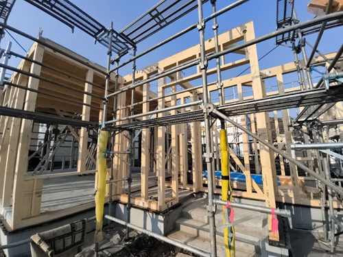 1階部分の建て込みをしています。