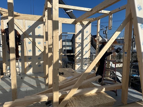 引き続き、1階部分の建て込みをしています。
