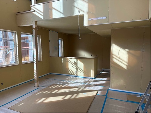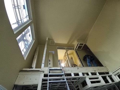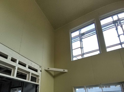 石膏ボードを貼っています。