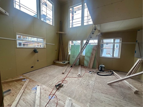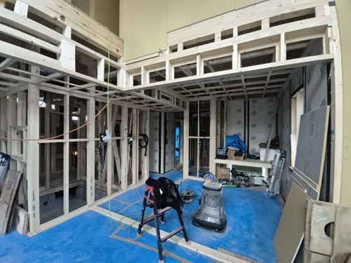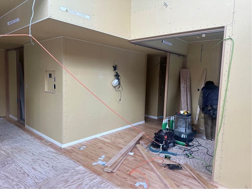 建物内部では、下地工事をしています。
