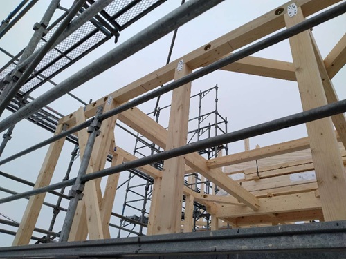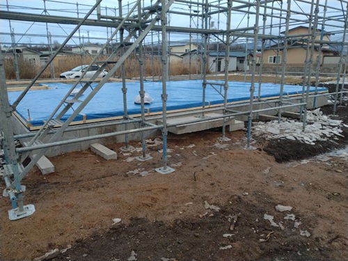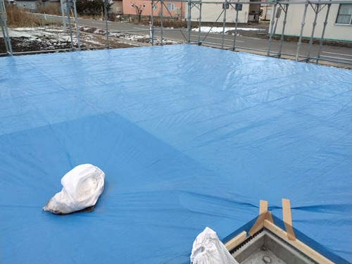 現場は養生シートにて万全に保護し、年明けより作業を再開いたします。