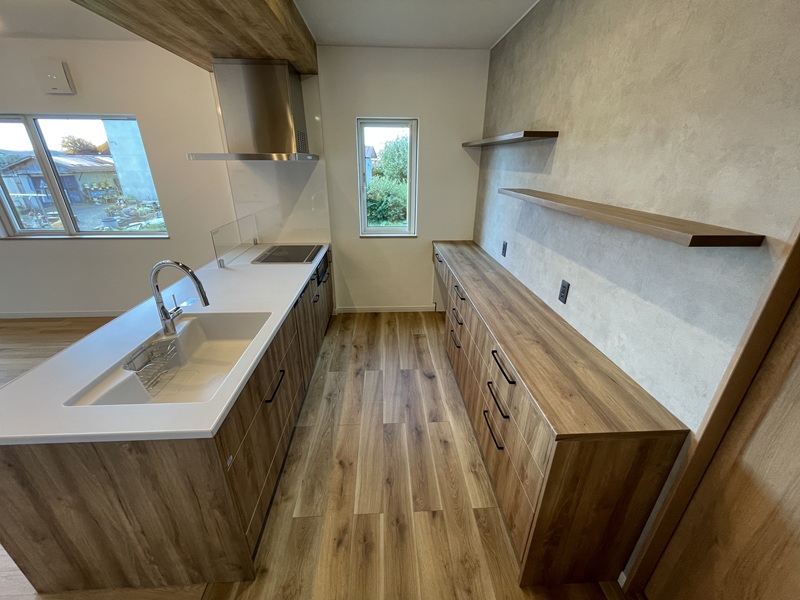 ~キッチン・パントリー・洗面・UB(1.25坪)がつながる理想的な回遊動線を実現。無駄のない動きで、毎日の家事効率が格段にアップします。大容量のキッチン背面収納やWICで、常にスッキリと片付いた空間を保てます。