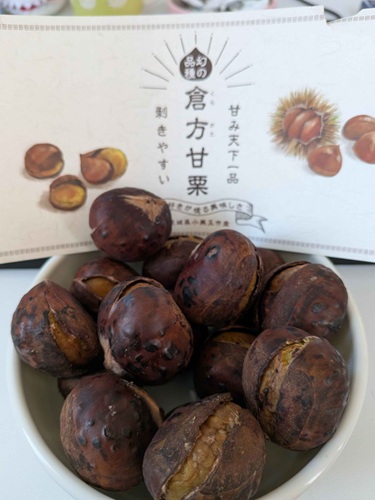 国産の栗で作った甘栗を、色々探してお取り寄せしたりしていましたが、去年に見つけた「焼き栗」がものすごかったです。